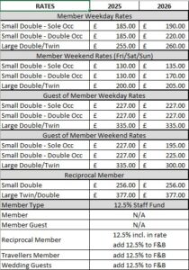 Although the Club is not fully open at weekends, the bedrooms are available at a discounted rate, with a full breakfast service offered in the Coffee Room.